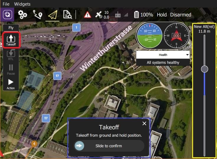 - Optionally set the takeoff altitude in the right-side vertical slider.